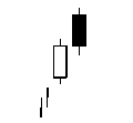 Downward trend. The first candlestick of the pattern is long black. The white candlestick opens below Low of the black one and closes a little higher than Close of the black candlestick. The white candlestick - not necessarily a long day. The body of the white candlestick is smaller than the body of the black candlestick. The upper shadow of the white candlestick is very small. Confirmation is suggested.