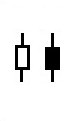 We will consider simple patterns (one candlestick) first, and then complex (several candlesticks). The figure containing the pattern will start with two small vertical lines. These lines simply indicate the direction of the previous trend of the market, and should not be used as a direct indication of the relations between patterns.