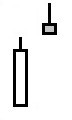Uptrend. The upper shadow is not less than 3 times is larger than the body. There is no lower shadow, or it is very short (no more than 10% of the candlestick range). The price gap between the star and the previous candlestick. Forex: the Close price of the previous candlestick and Open of the Star are equal. The body color does not matter. Confirmation is suggested.